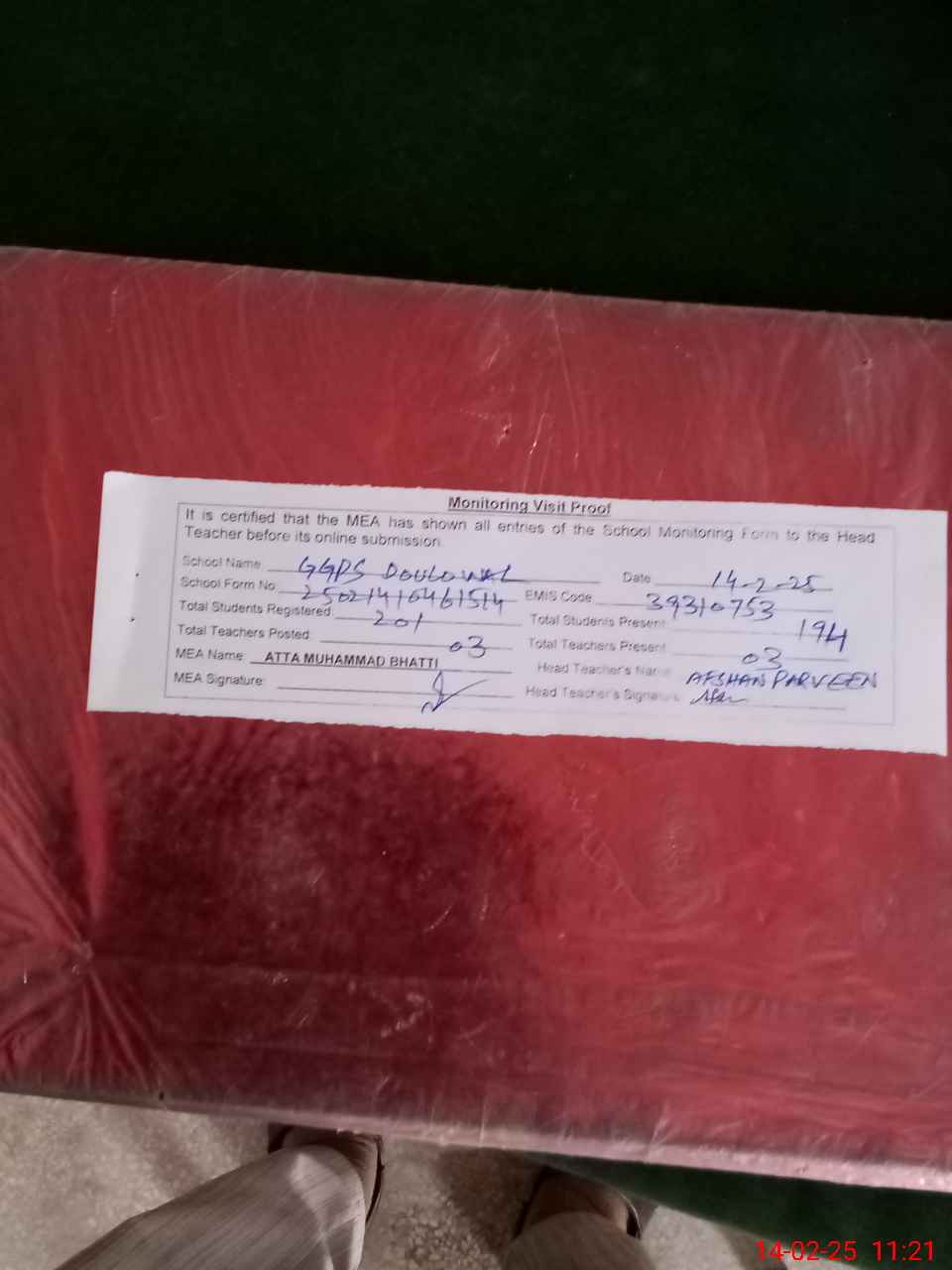 | Certified that this School was Inspected by the Undersigned MEA/DMO Today and the Information Stated Above is as Per Record. | |||||