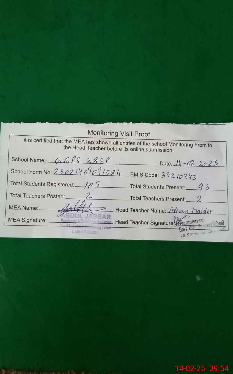 | EMIS Code: 39210343 | Name of School: GGPS 28 SP | |||