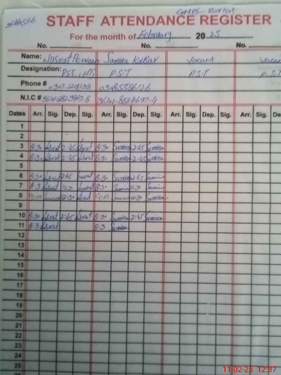 | Name: NU**** PA**** Designation: (School Headmaster's/Headmistress's) PST Phone/Cell Number: 03**** |