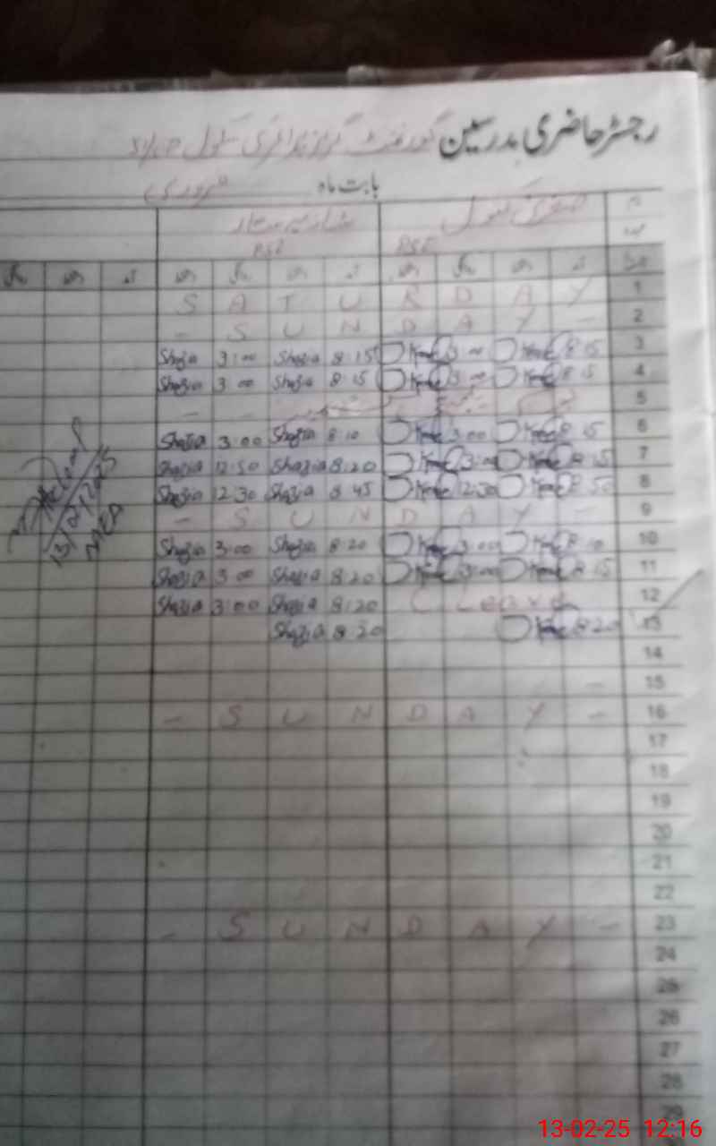 | CNIC | Full Name | Designation | R/C | Absence During Last Calender Month |