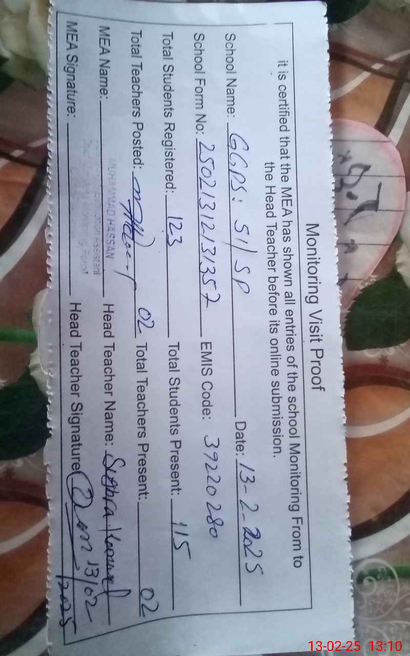 | EMIS Code: 39220280 | Name of School: GGPS 51 SP POST OFFICE JEVAN SHAH | |||