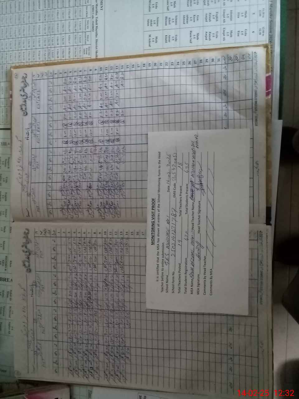 | Attendance Register | Head Teacher | MEA with School | Visit Proof |