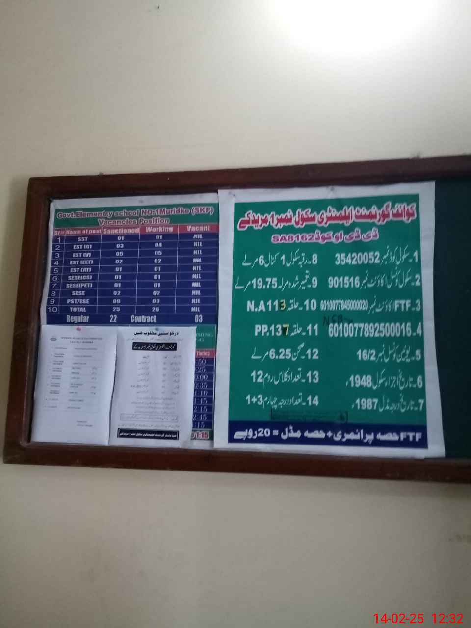 | District: SHEIKHUPURA | Tehsil: MURIDKE | Markaz: DHAROOR-MALE | Level: Middle | |
