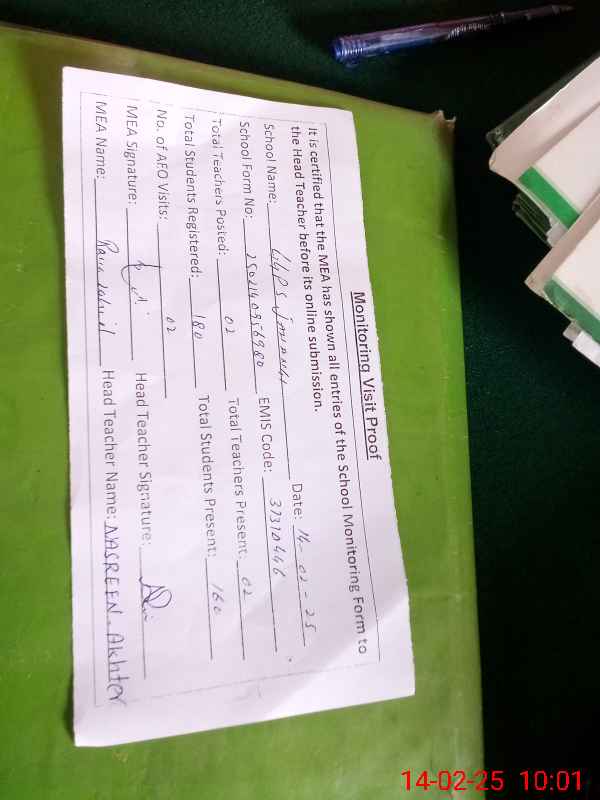 | EMIS Code: 31310446 | Name of School: GGPS MOZA JAHANGI | |||