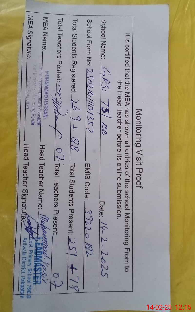 | EMIS Code: 39220182 | Name of School: GPS 75 EB P/O SAME | |||