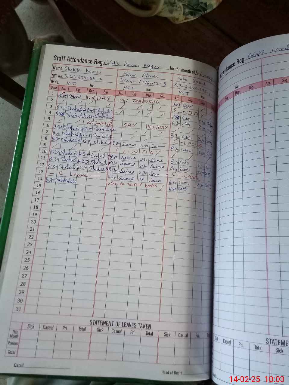 | 31**** | Ay**** Mu**** | 2 | 0 | 0 | 31 | 0 | 0 | 0 | 0 | 0 | 0 | Absent (Un-Authorized) | |