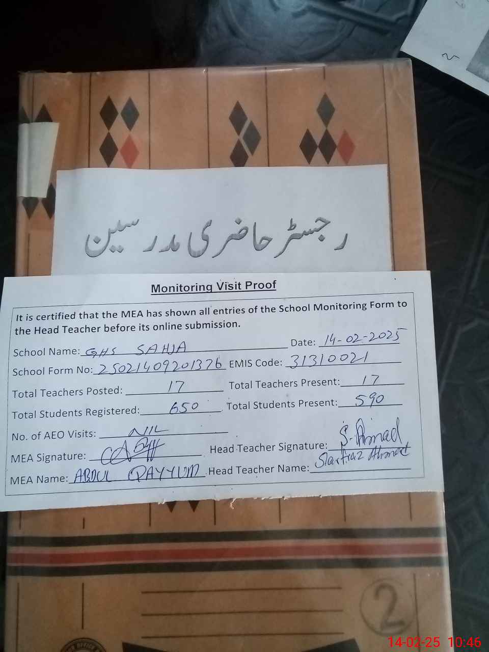 | EMIS Code: 31310021 | Name of School: GHS SEHJA | |||