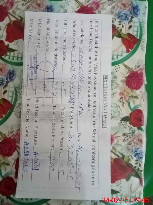 | Certified that this School was Inspected by the Undersigned MEA/DMO Today and the Information Stated Above is as Per Record. | |||||