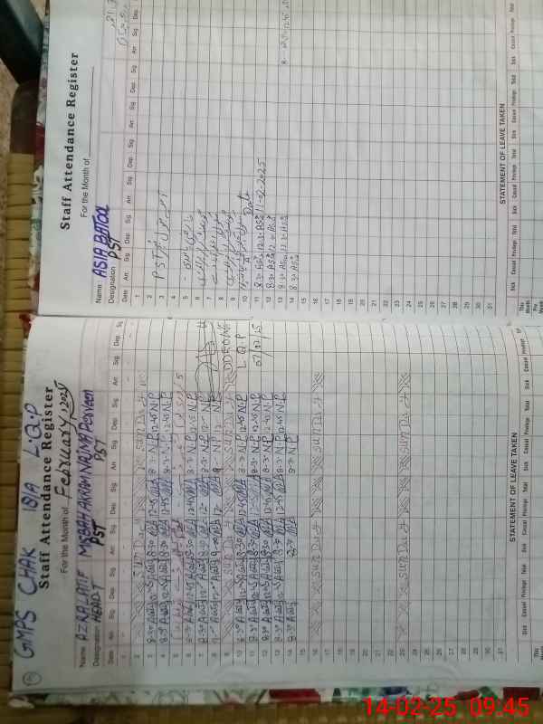 | Name: AZ**** LA**** Designation: (School Headmaster's/Headmistress's) PST/PTC/JV Phone/Cell Number: 03**** |
