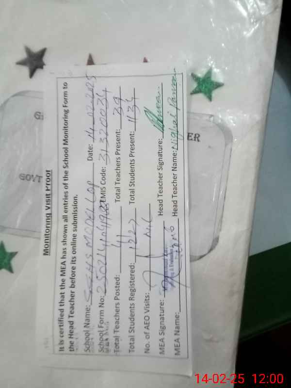 | Certified that this School was Inspected by the Undersigned MEA/DMO Today and the Information Stated Above is as Per Record. | |||||