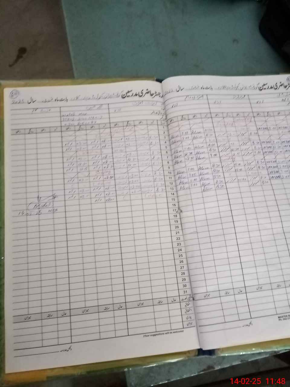 | CNIC | Full Name | Designation | R/C | Absence During Last Calender Month |