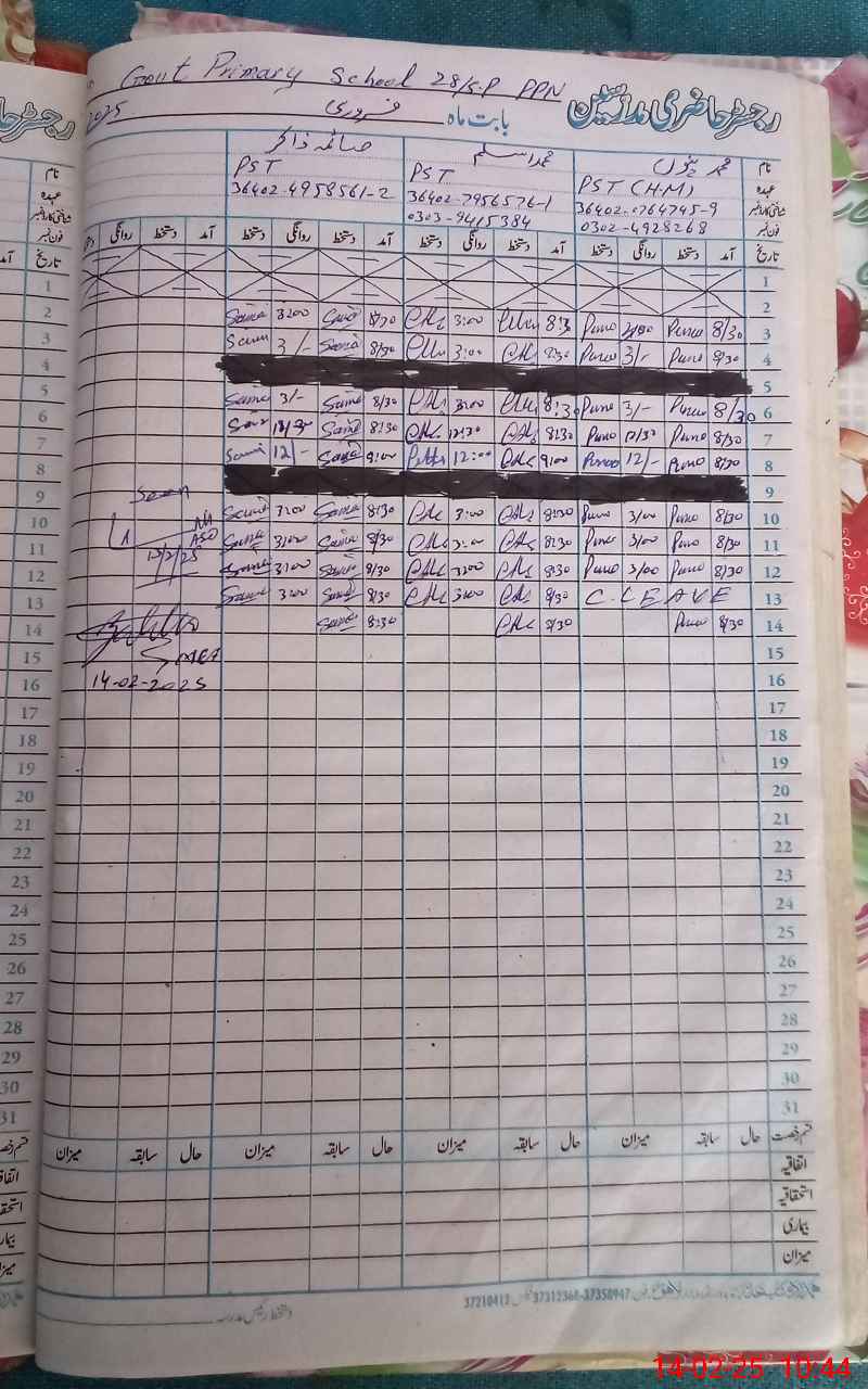 | Name: MU**** PU**** Designation: (School Headmaster's/Headmistress's) PST Phone/Cell Number: 03**** |