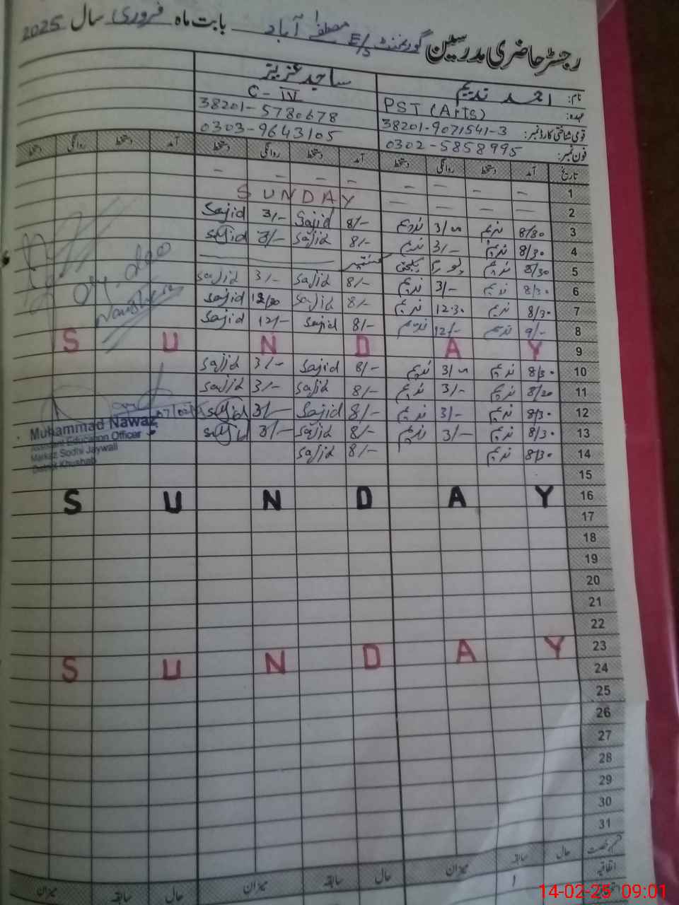 | Name: Ab**** Re**** Designation: (School Headmaster's/Headmistress's) Est Phone/Cell Number: 03**** |