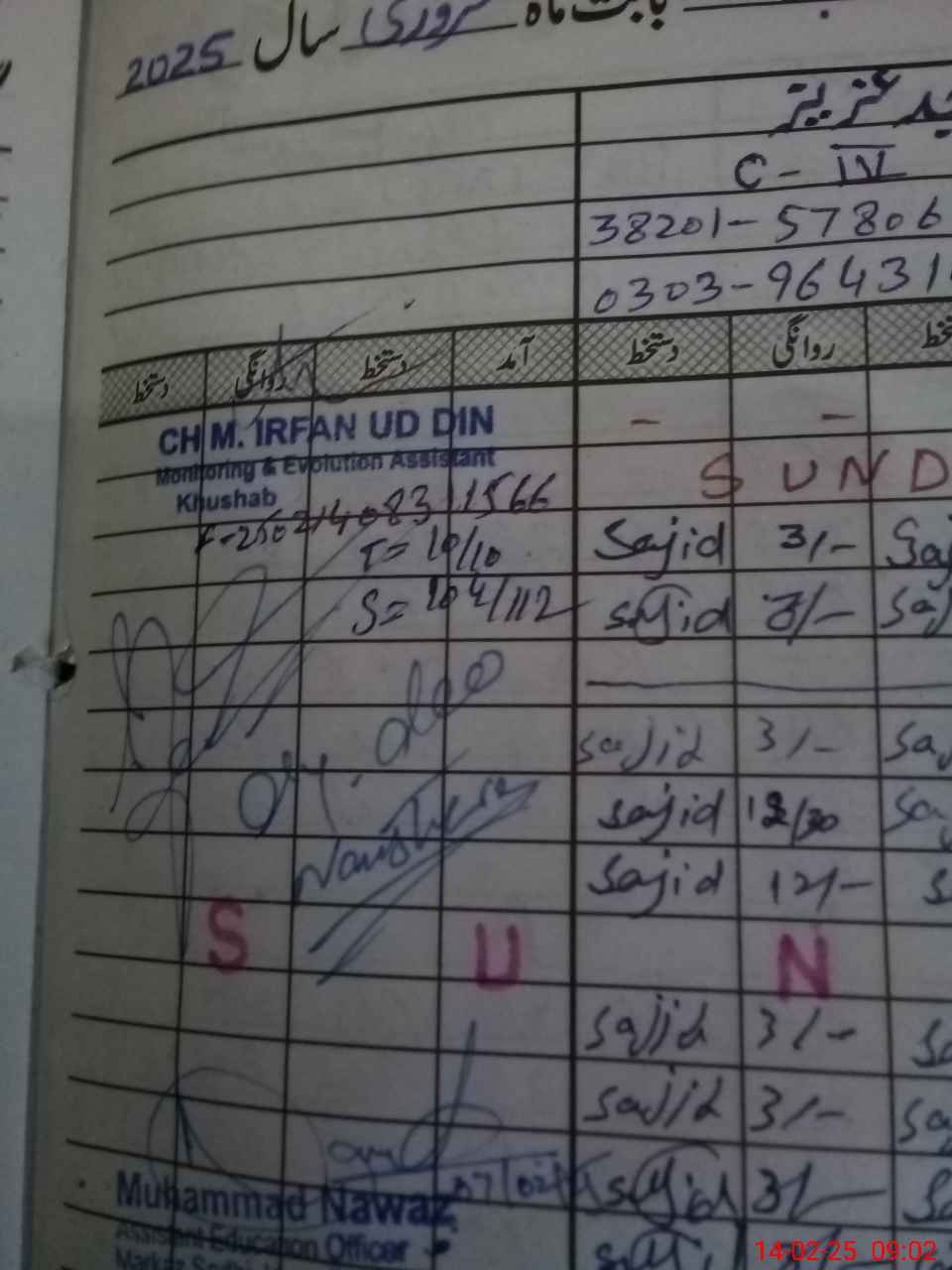 | CNIC | Full Name | Designation | R/C | Absence During Last Calender Month |