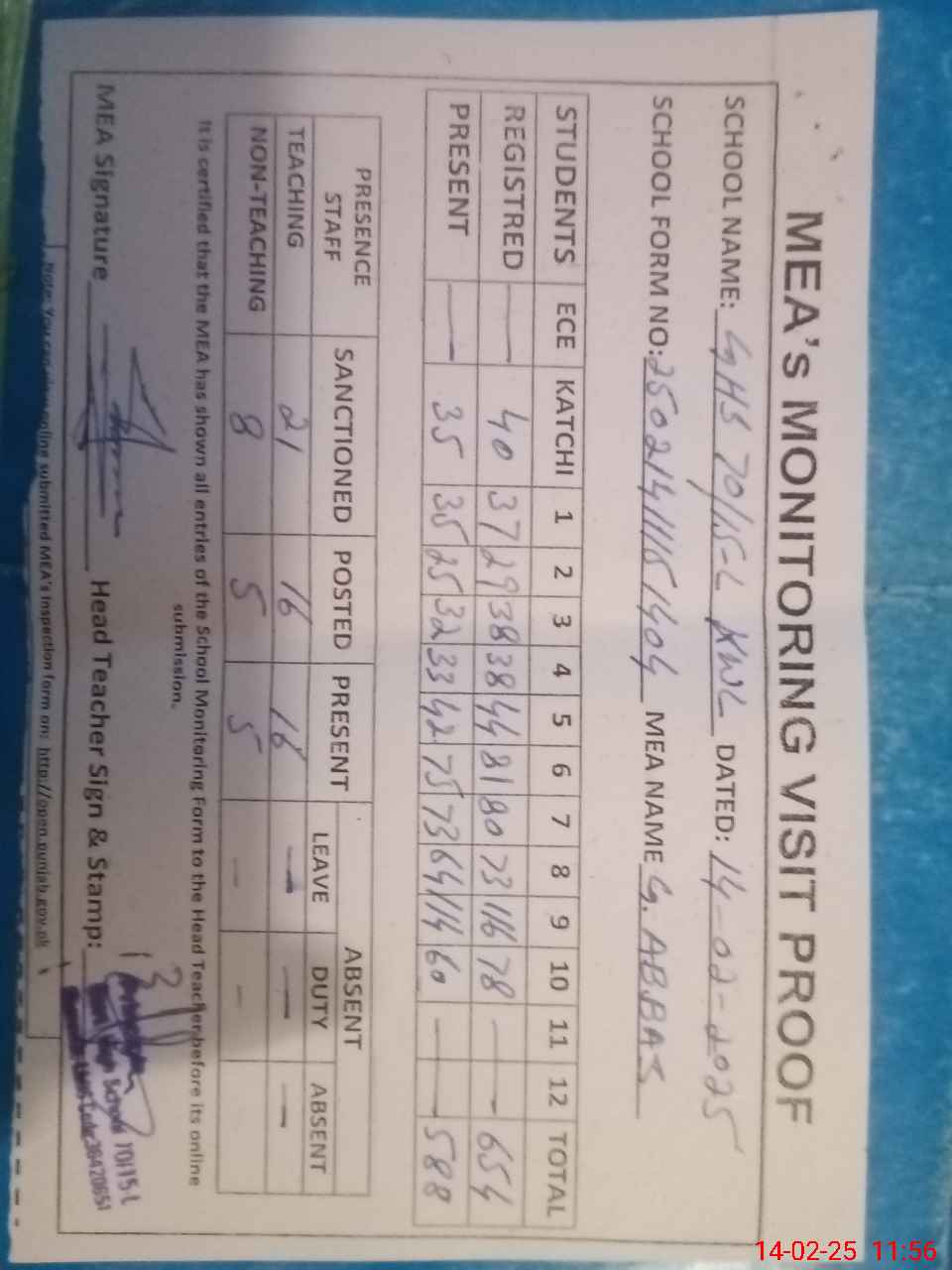 | EMIS Code: 36420651 | Name of School: GHS 70/15-L, KHANEWAL | |||