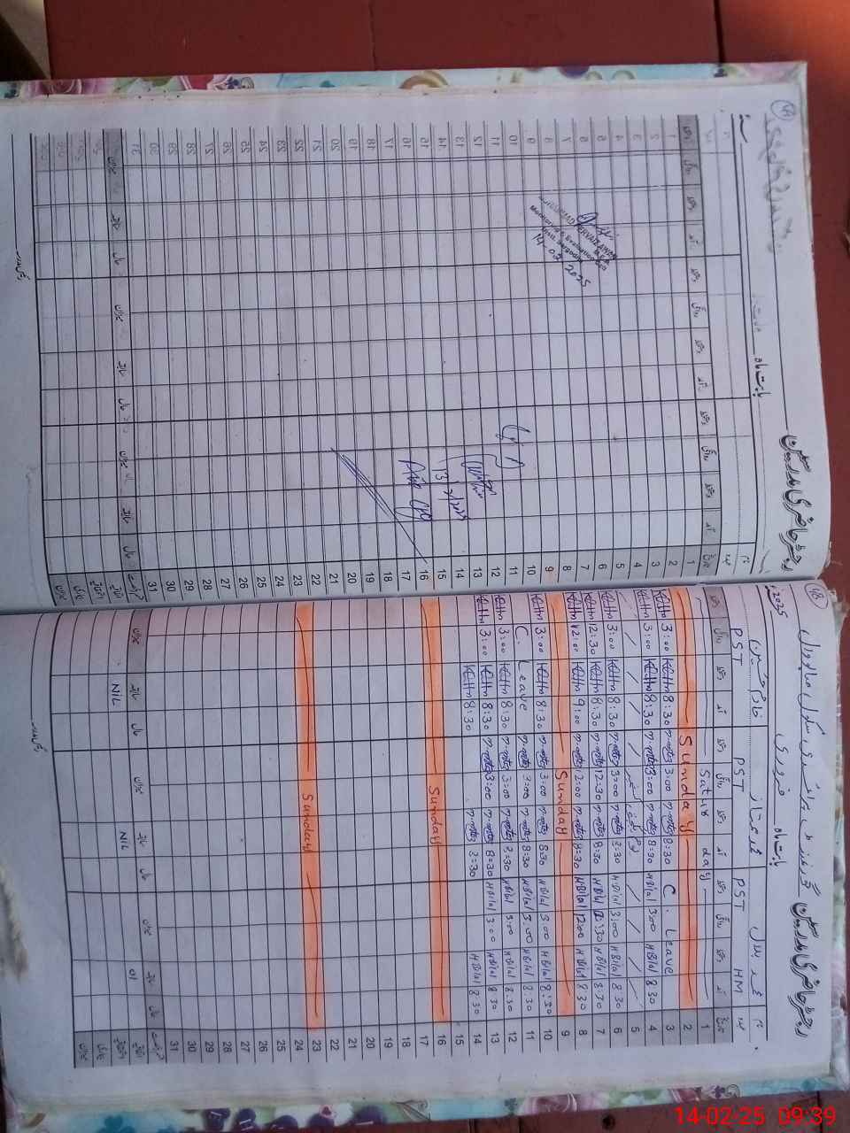 | CNIC | Full Name | Designation | R/C | Absence During Last Calender Month |