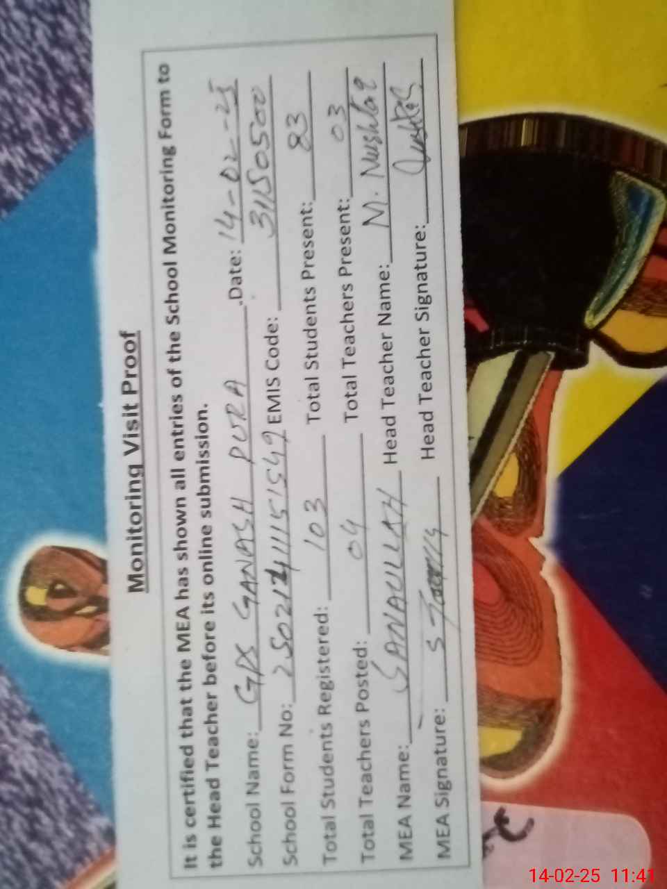 | EMIS Code: 31150500 | Name of School: GPS GANASH PURA MINCHINABAD | |||