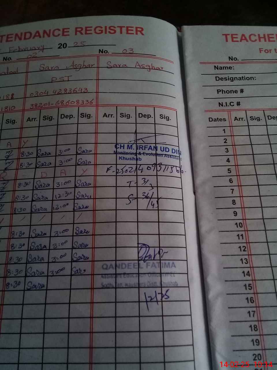 | Name: Ro**** Na**** Designation: (School Headmaster's/Headmistress's) ESE Arts Phone/Cell Number: 03**** |