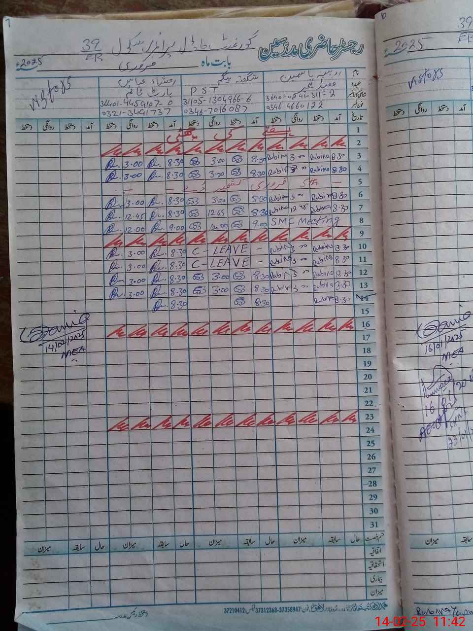 | CNIC | Full Name | Designation | R/C | Absence During Last Calender Month |