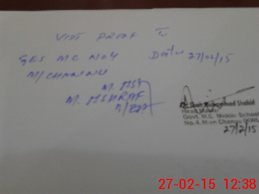 | EMIS Code: 36430128 | Name of School: GES MC NO.4 MIAN CHANNU | |||