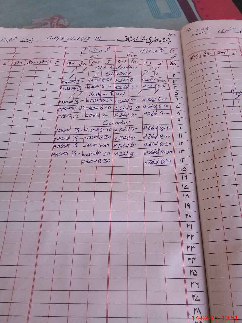 | CNIC | Full Name | Designation | R/C | Absence During Last Calender Month |