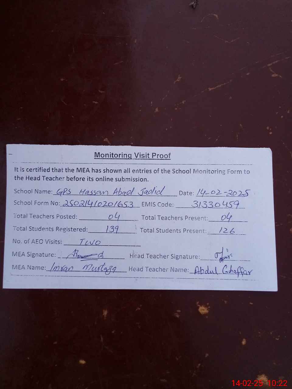 | EMIS Code: 31330459 | Name of School: GPS HASSAN ABAD JADID | |||