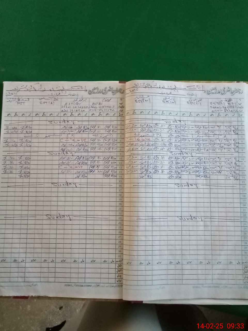 | CNIC | Full Name | Designation | R/C | Absence During Last Calender Month |