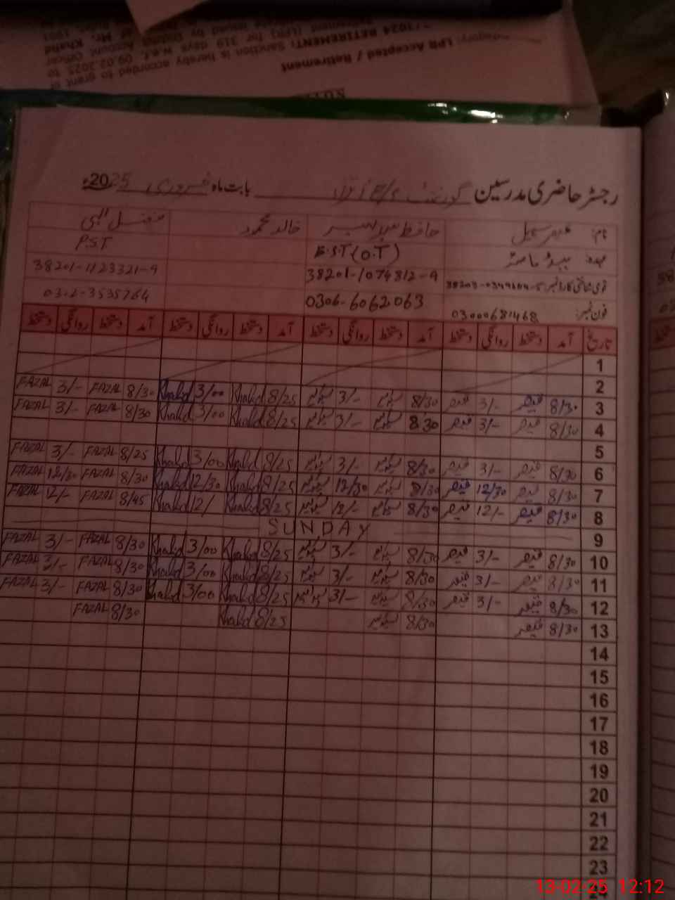 | CNIC | Full Name | Designation | R/C | Absence During Last Calender Month |
