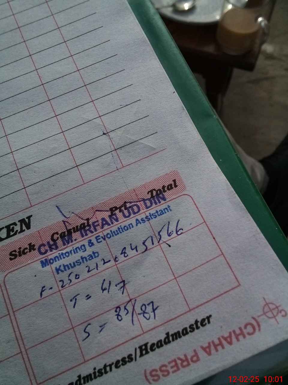 | Name: MU**** IS**** Designation: (School Headmaster's/Headmistress's) PST Phone/Cell Number: 03**** |