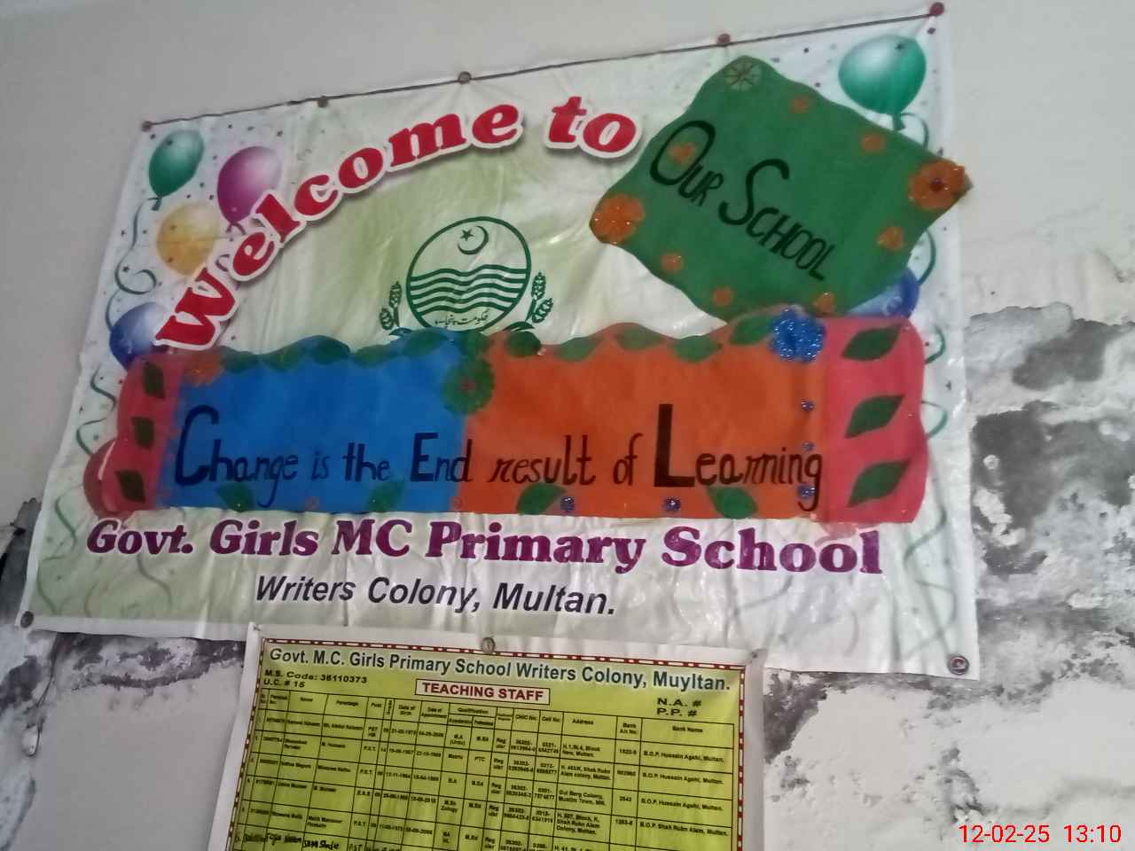| EMIS Code: 36110373 | Name of School: GGPS MC WRITERS COLONY MULTAN | |||
