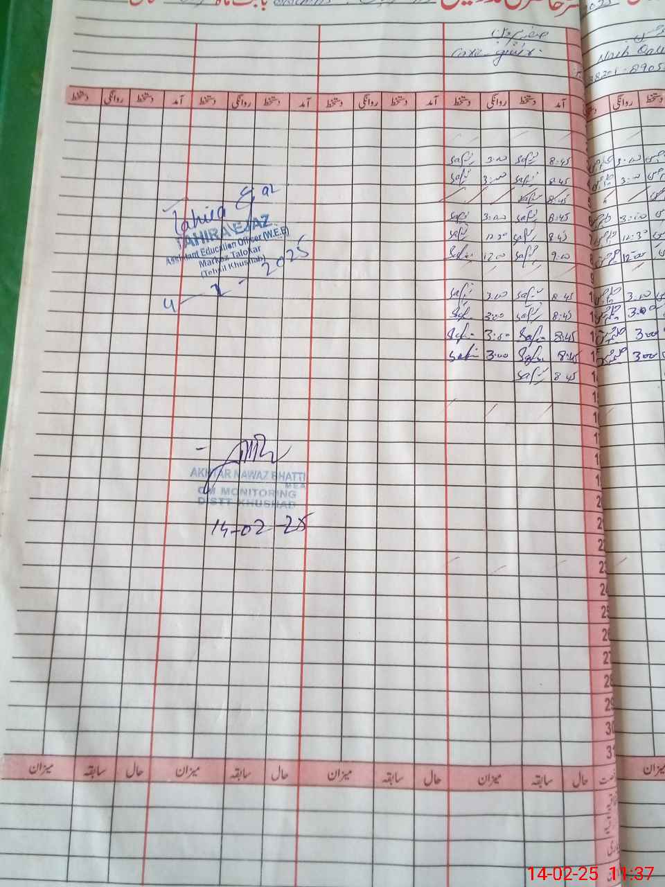| CNIC | Full Name | Designation | R/C | Absence During Last Calender Month |