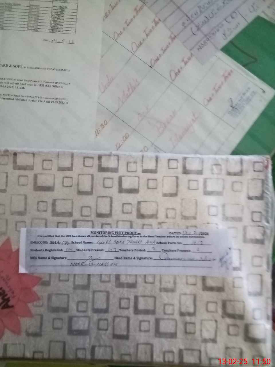 | Certified that this School was Inspected by the Undersigned MEA/DMO Today and the Information Stated Above is as Per Record. | |||||