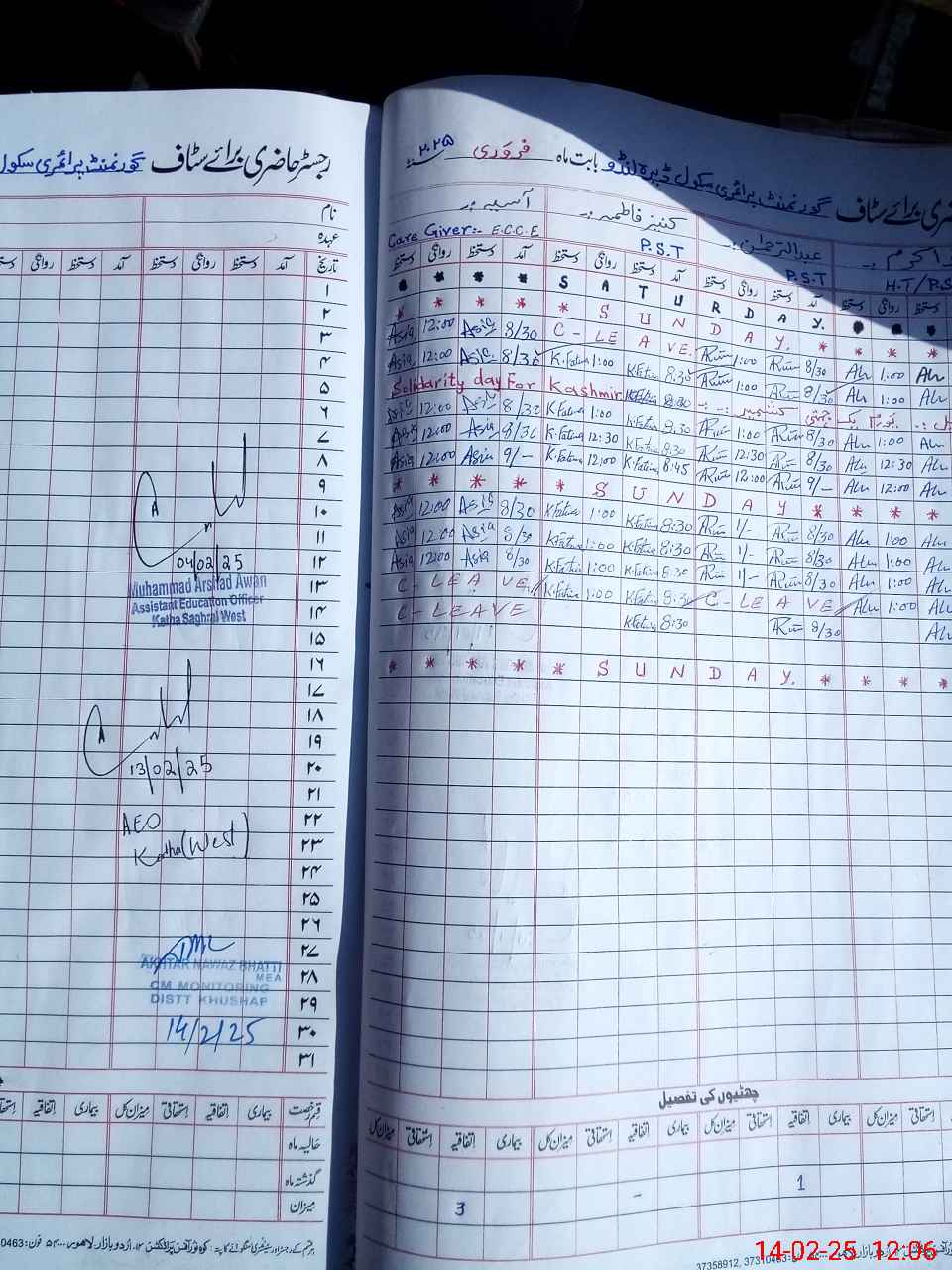 | Name: MU**** Ak**** Designation: (School Headmaster's/Headmistress's) PST Phone/Cell Number: 03**** |