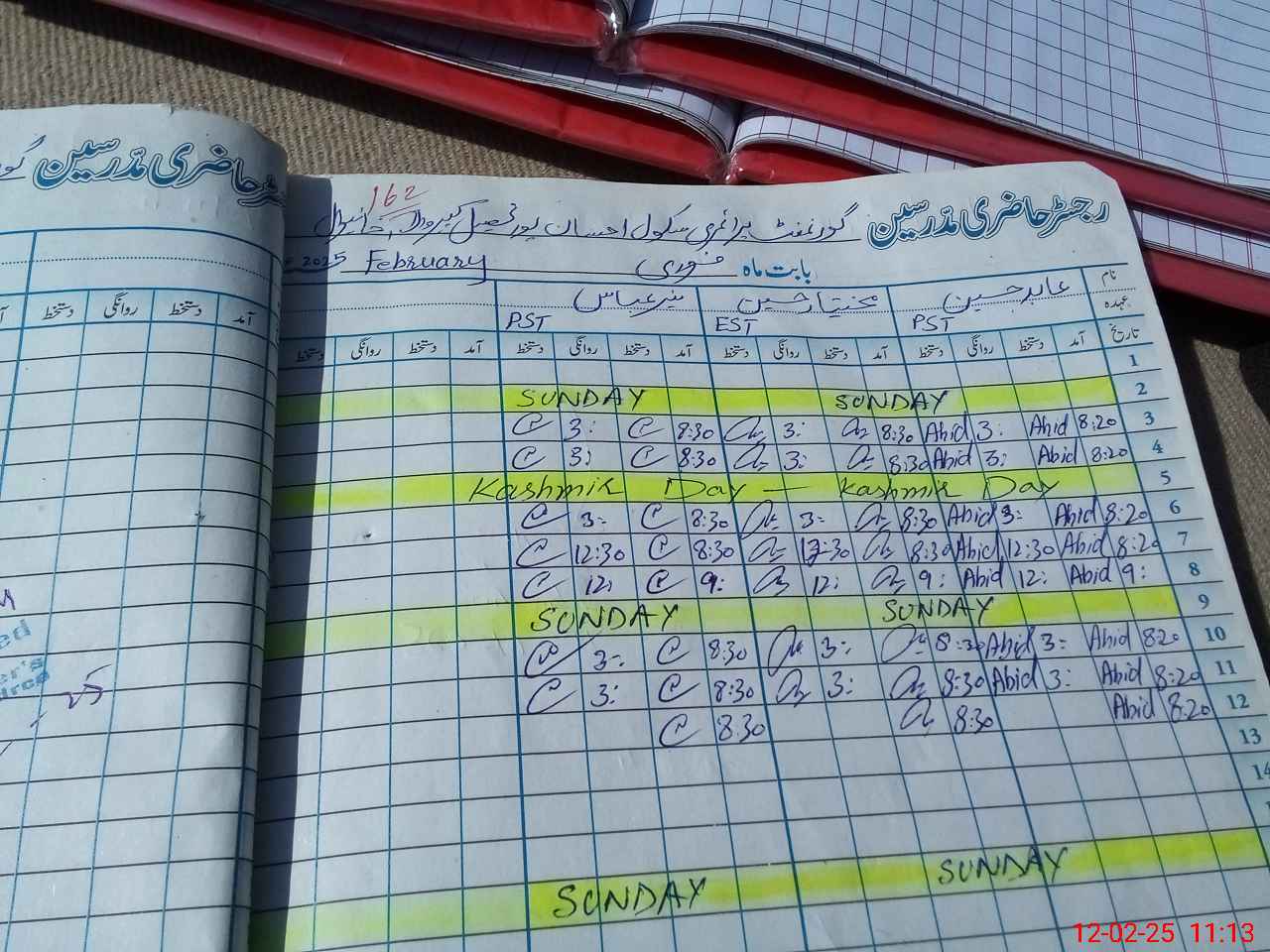 | CNIC | Full Name | Designation | R/C | Absence During Last Calender Month |