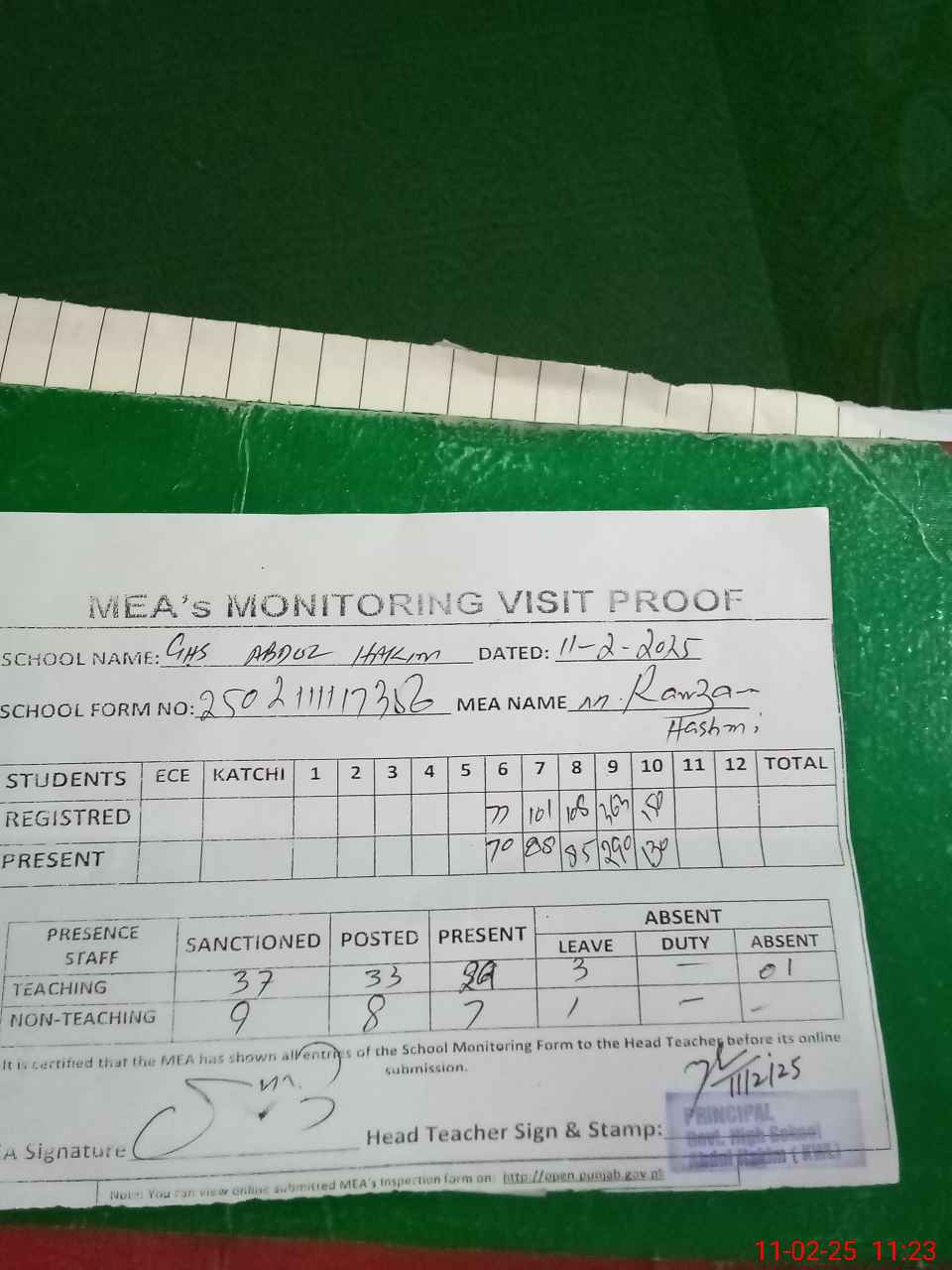 | EMIS Code: 36410021 | Name of School: GHS ABDUL HAKIM | |||