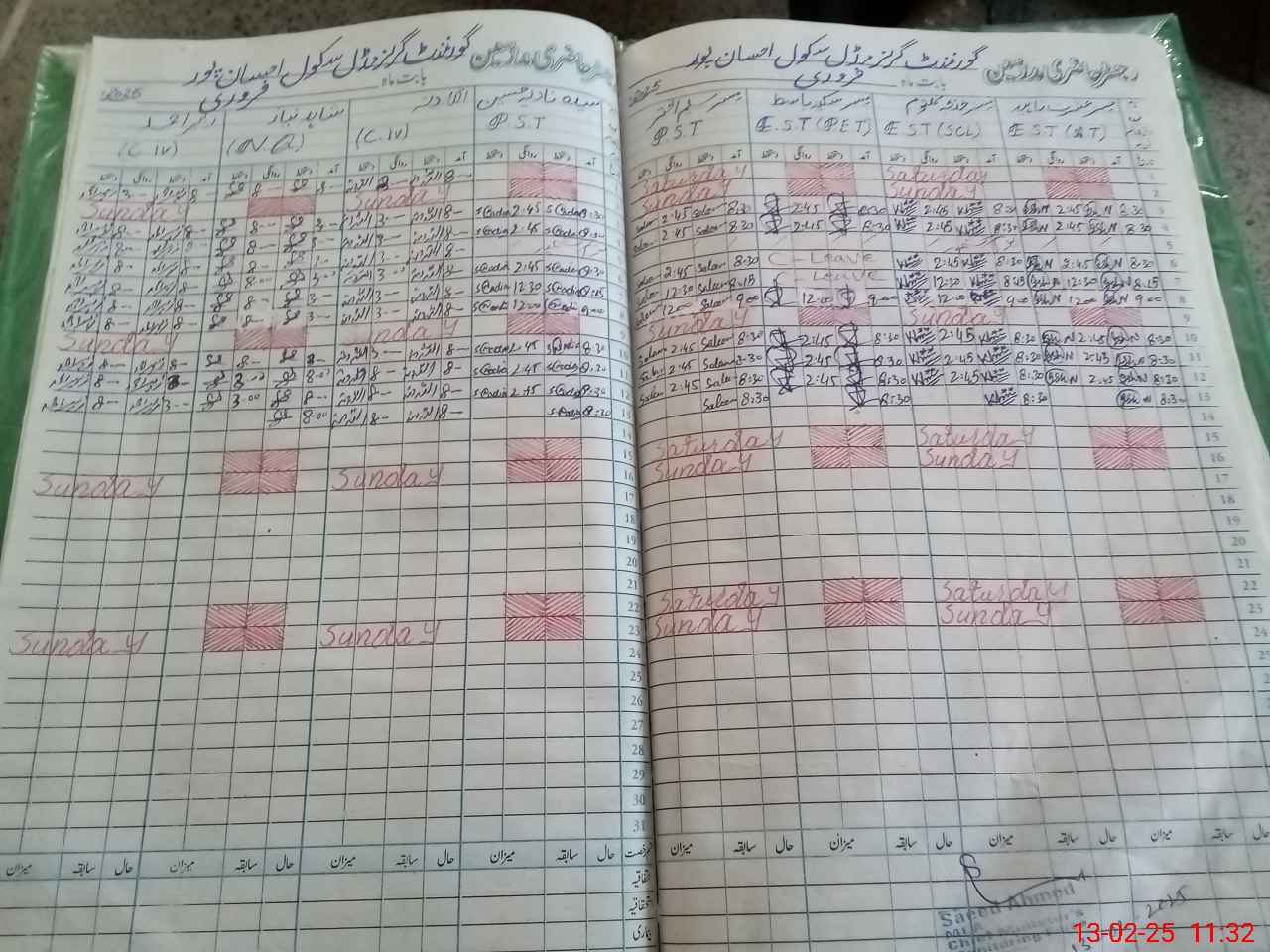 | CNIC | Full Name | Designation | R/C | Absence During Last Calender Month |