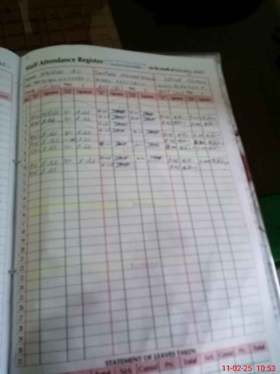 | CNIC | Full Name | Designation | R/C | Absence During Last Calender Month |