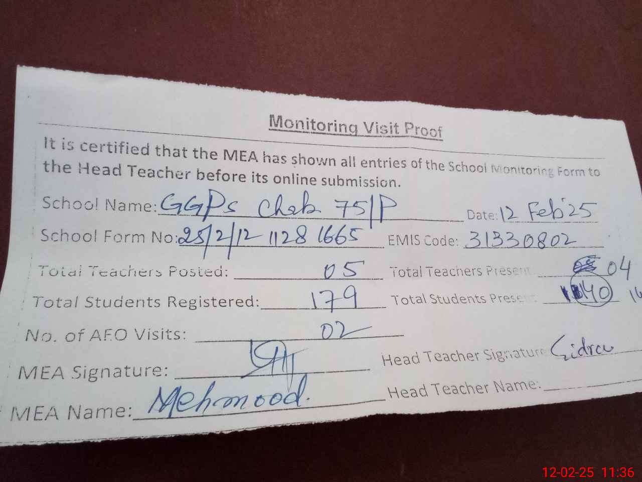 | EMIS Code: 31330802 | Name of School: GGPS CHAK 75/P | |||