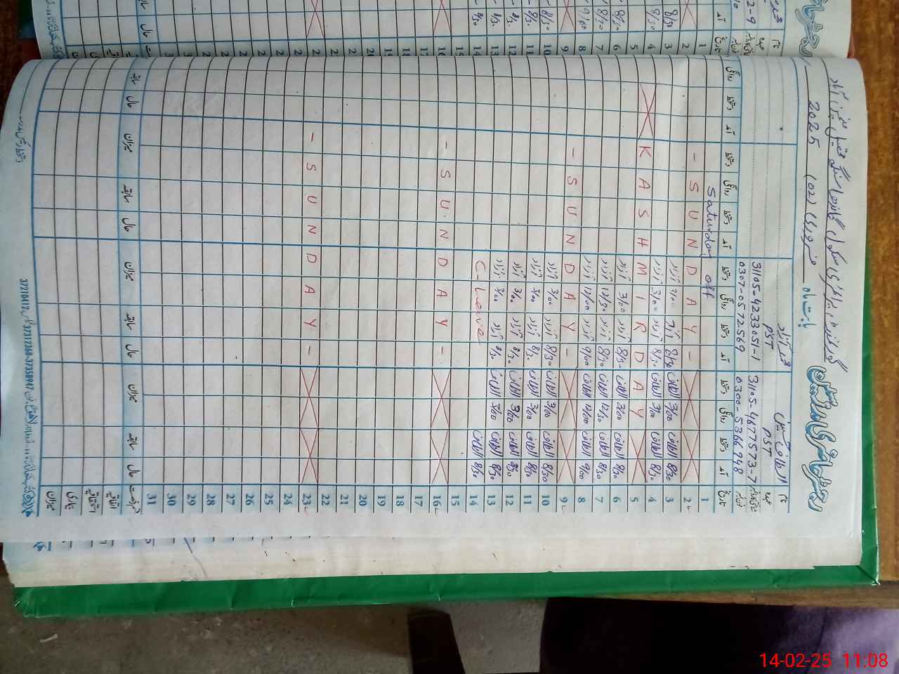 | CNIC | Full Name | Designation | R/C | Absence During Last Calender Month |