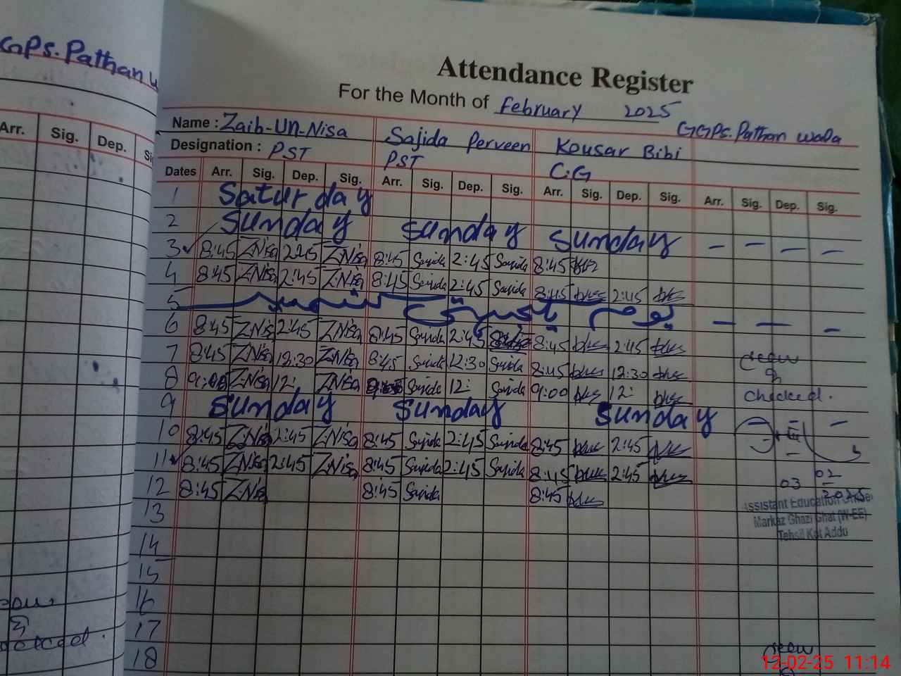 | Name: Za**** UnNi**** Designation: (School Headmaster's/Headmistress's) Pst Phone/Cell Number: 03**** |