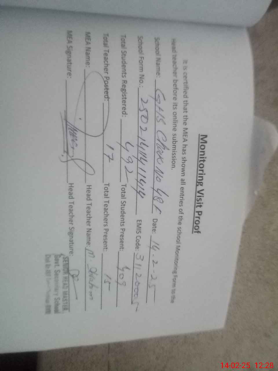 | EMIS Code: 31120005 | Name of School: GHS CHAK NO. 48/F | |||