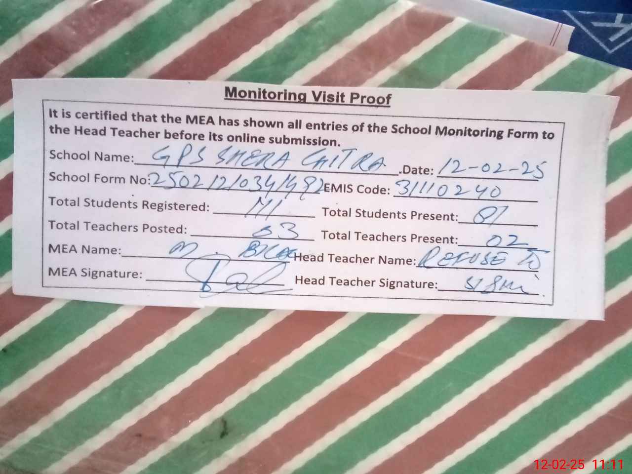 | EMIS Code: 31110240 | Name of School: GPS SHERA CHITRA | |||