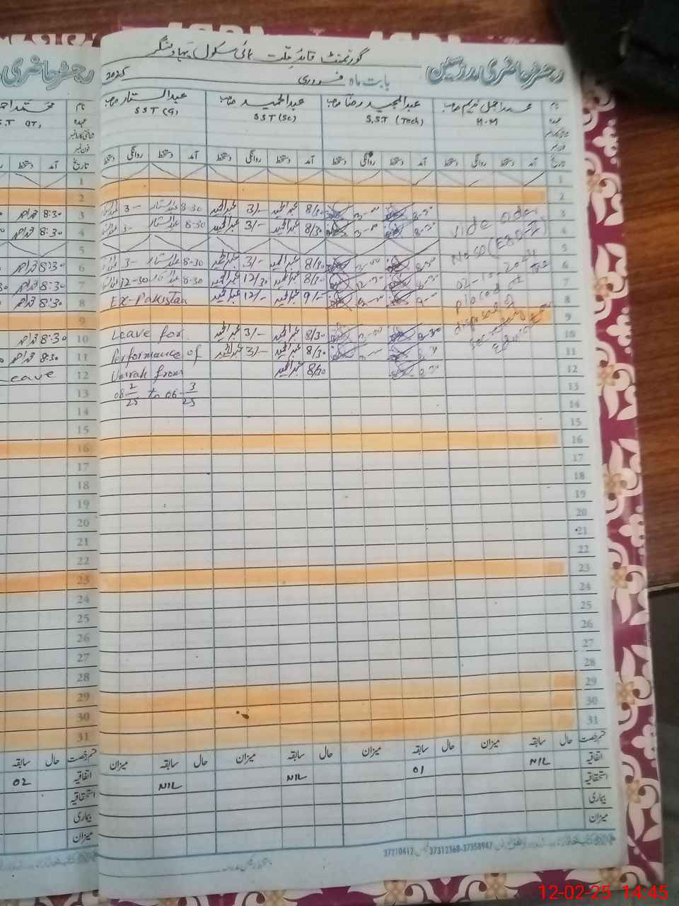 | 31**** | Mu**** Aj**** Na**** | 2 | 0 | 0 | 0 | 0 | 0 | 0 | 0 | 0 | 0 | Absent (Un-Authorized) | |