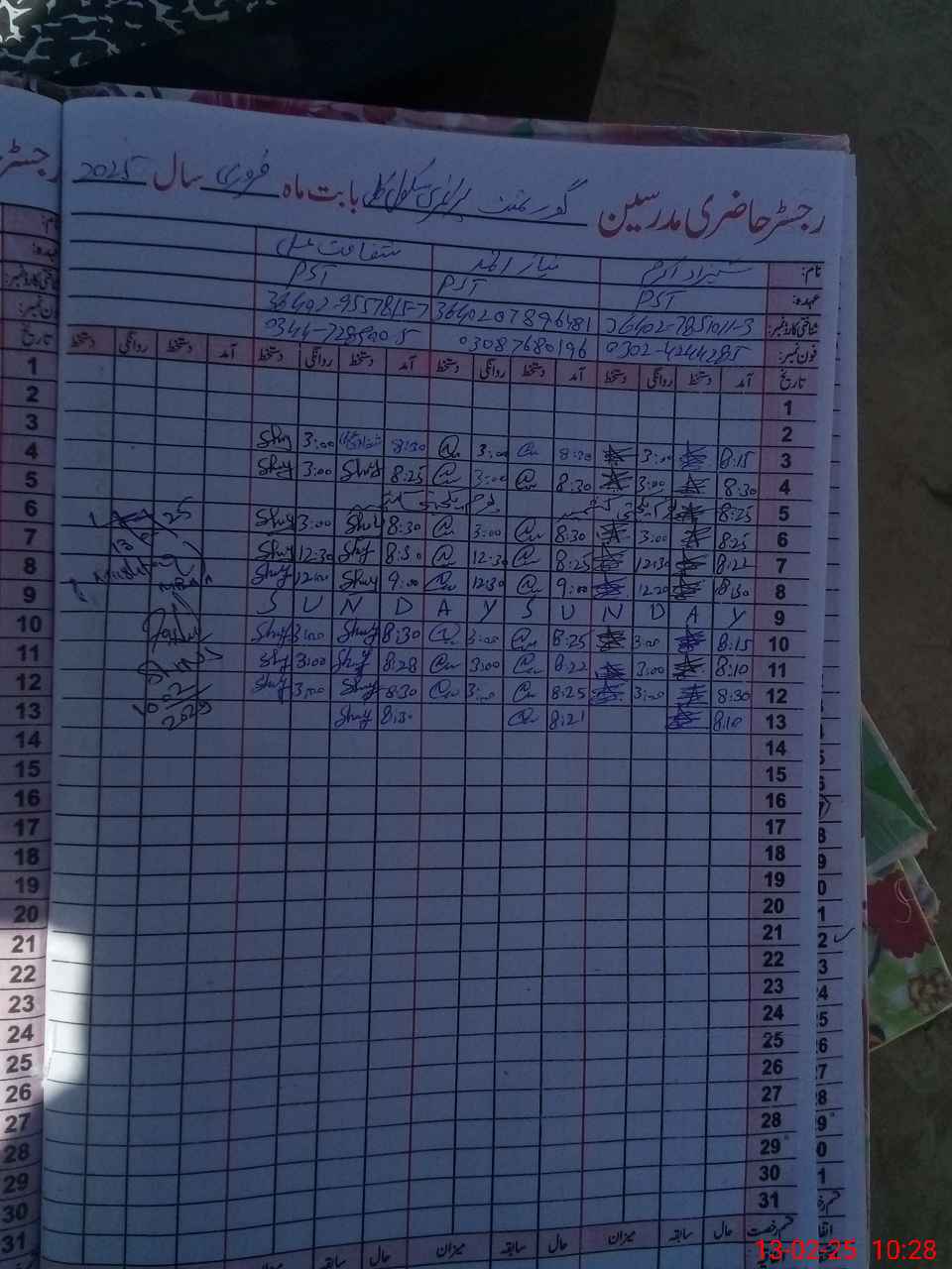 | Name: SH**** AK**** Designation: (School Headmaster's/Headmistress's) PST Phone/Cell Number: 03**** |
