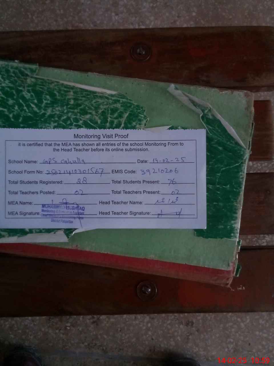 | EMIS Code: 39210206 | Name of School: GPS GHULLA P/O PAKPATTAN | |||