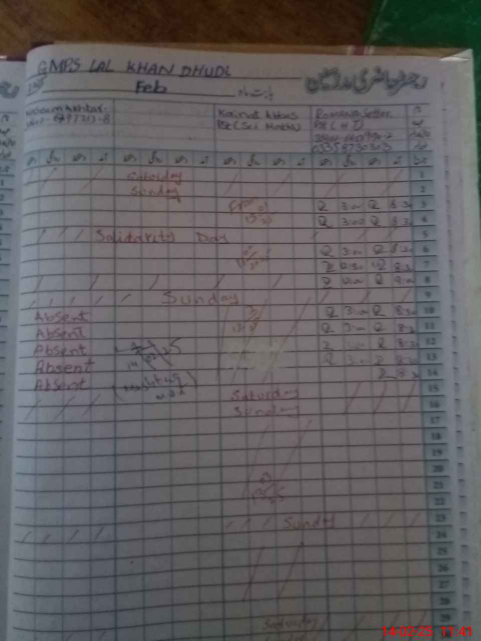 | Name: Ro**** Sa**** Designation: (School Headmaster's/Headmistress's) PST Phone/Cell Number: 03**** |