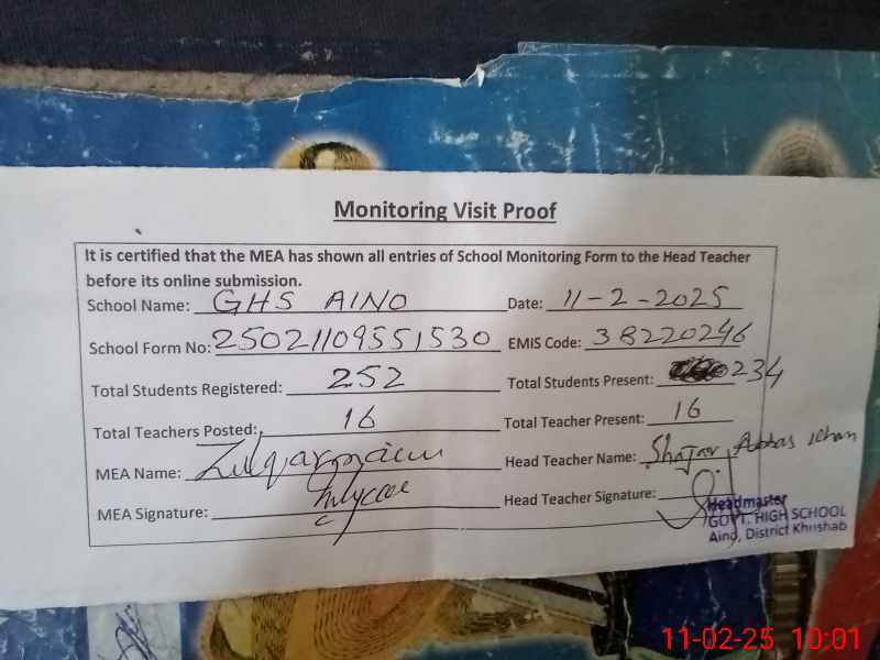 | EMIS Code: 38220246 | Name of School: GHS AINO | |||