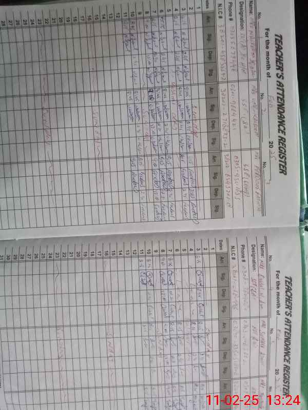 | Name: NA**** IQ**** Designation: (School Headmaster's/Headmistress's) S.S.T.(GEN) Phone/Cell Number: 03**** |