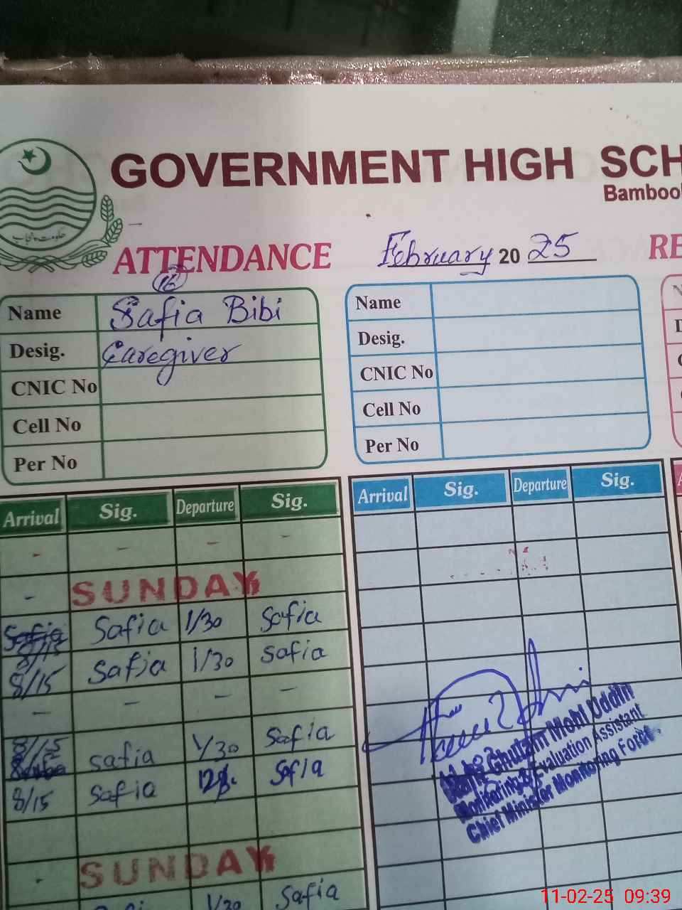 | Name: Kh**** Ha**** Designation: (School Headmaster's/Headmistress's) Sr HEADMASTER Phone/Cell Number: 03**** |