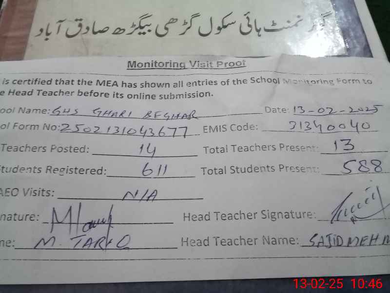 | EMIS Code: 31340040 | Name of School: GHS GHARI BHGER | |||